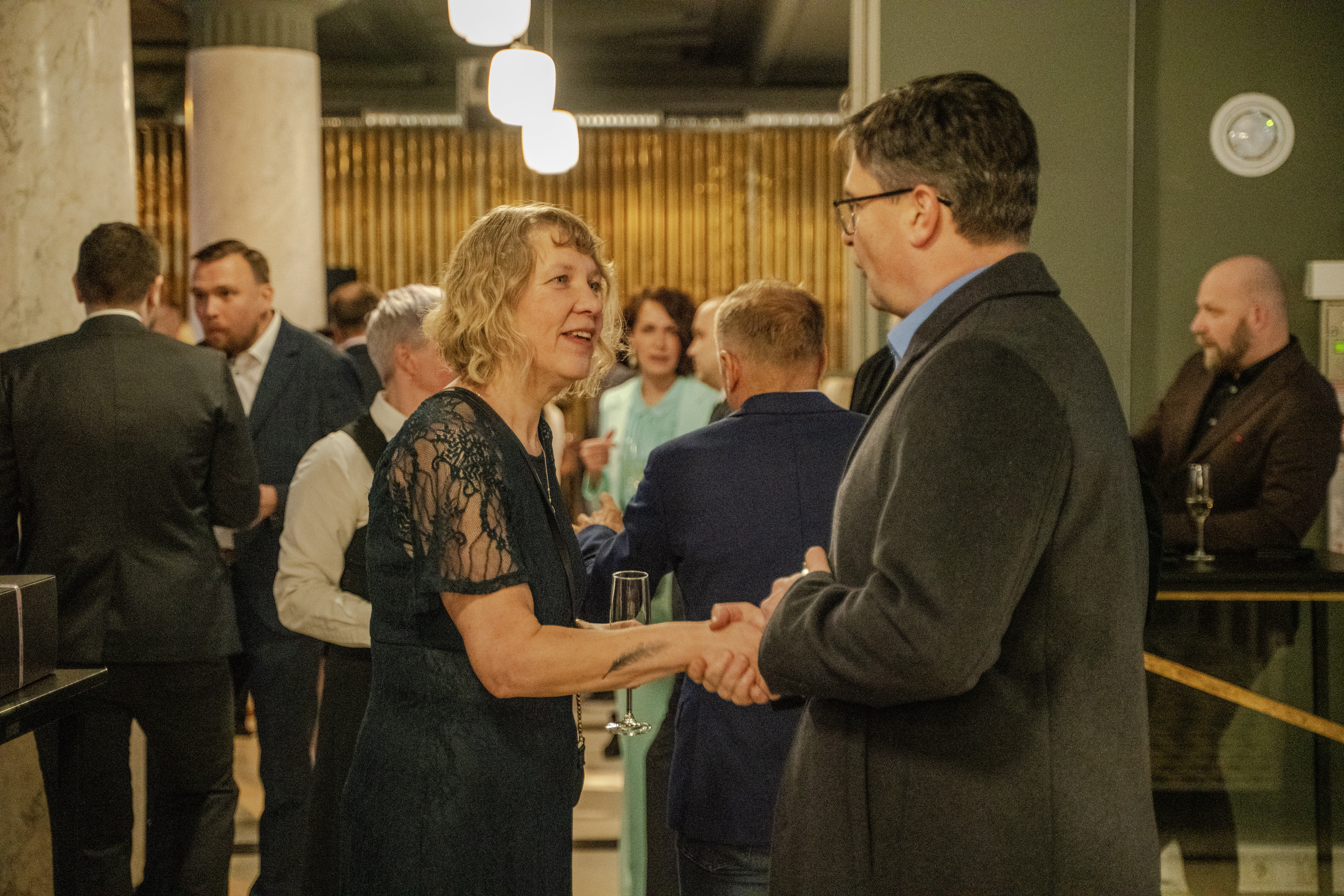 Julianus Inkasso tegevjuht Merle Laurimäe ja juhatuse liige Mihkel Veskimägi tervitamas külalisi. Foto: Jaana Laas
